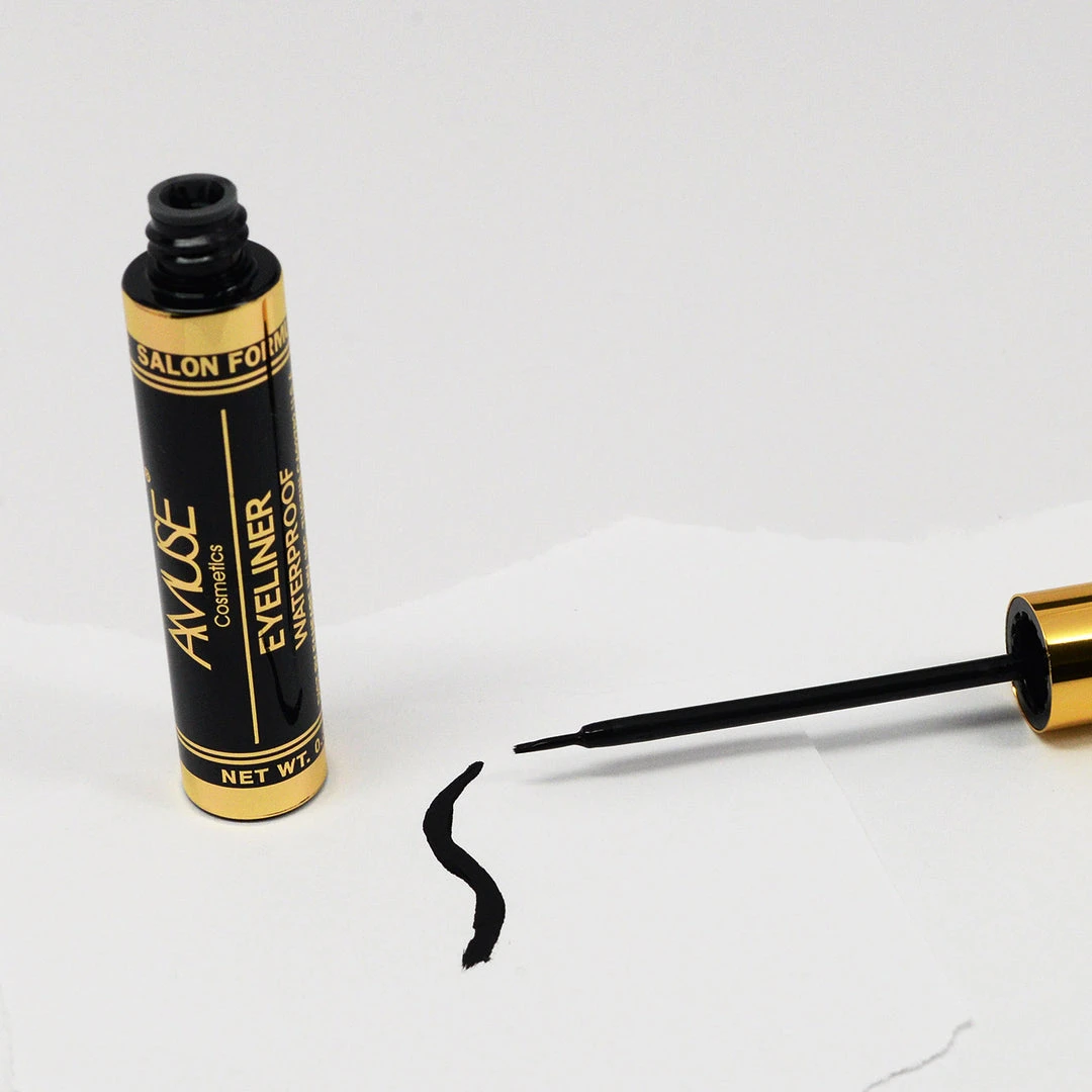 - Achieve bold, long-lasting eye makeup with the Amuse Liquid Waterproof Eyeliner in Black. Its rich pigment ensures a striking look that lasts all day without smudging or fading.