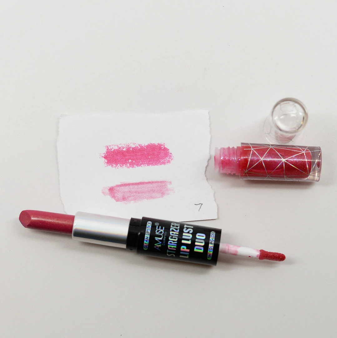 - Enhance your look with the Amuse Stargazer Lip Lust Duo Lipstick & Lip Gloss (Zalra), offering a seamless blend of rich, pigmented lipstick and glossy shine for a stunning finish.