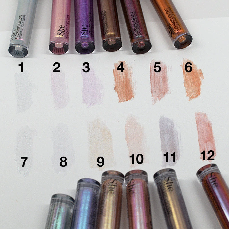 - Experience a cosmic glow with the S.he Makeup Cosmic Glow Holographic Lip Gloss. This luxurious lip gloss delivers a mesmerizing holographic shine that catches the light beautifully.