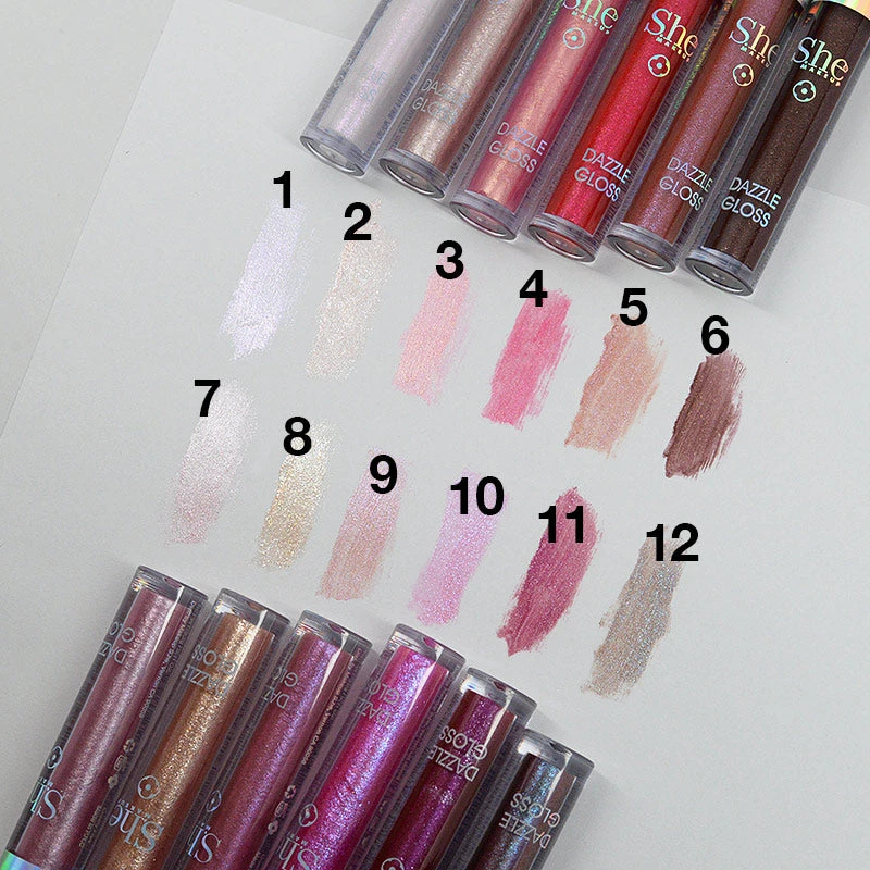 - Achieve a high-shine, dazzling finish with S.he Makeup Dazzle Gloss Lip Gloss. Perfect for any occasion, this lip gloss adds a touch of glamour to your look.